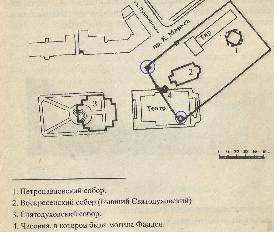 Савандер говорит: театр с памятником — это хорошо и часовня и подземная церковь — хорошо. Поэтому его проект компромиссный. Впрочем, православные активисты чаще называют площадь Соборной, что будто намекает на планы изменить ее название. Недавно примыкающий к стройке участок проспекта Карла Маркса переименовали в Большую Петропавловскую улицу.