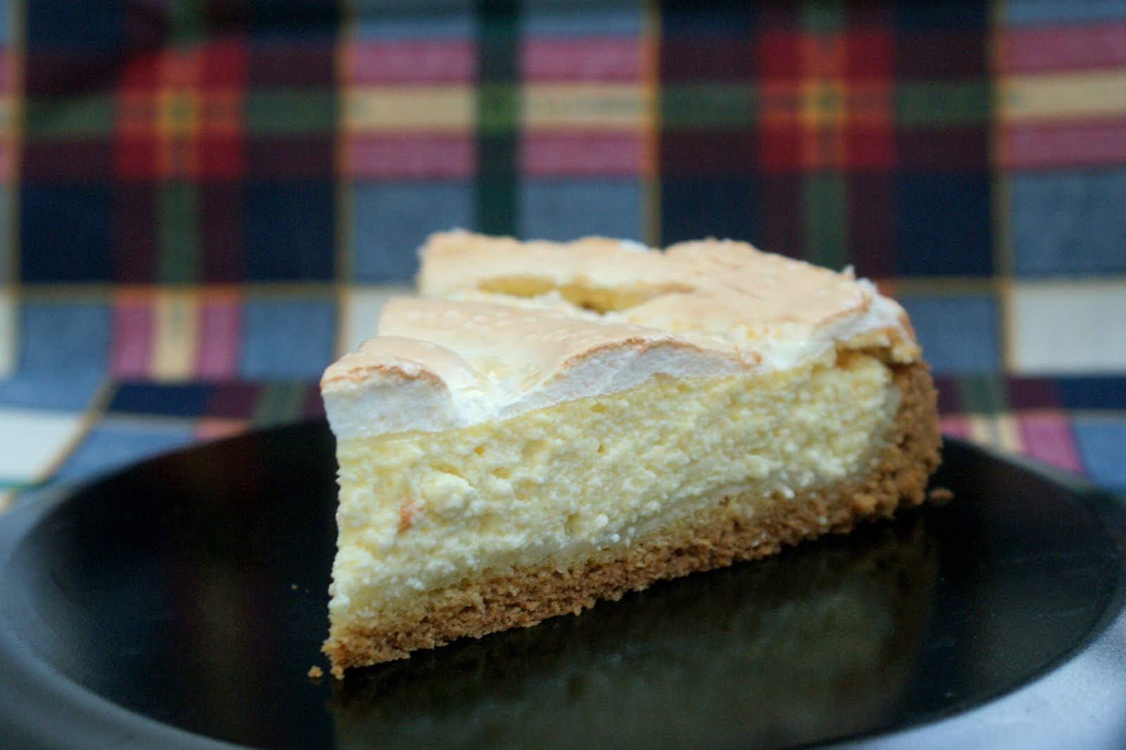 Достать тесто из холодильника и выложить в форму. Сверху выложить творожную начинку. Выпекать 30 минут при температуре 180 градусов. Затем достать пирог, сверху выложить суфле (для суфле взбить белки с сахарной пудрой) и печь еще 10-15 минут до золотистого цвета.