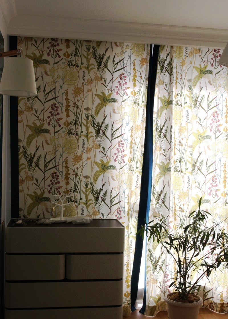 Окна выходят на юг и запад, сторона солнечная, как и мечталось.Текстиль в доме муж целиком отдал мне на откуп, здесь я отрывалась. Ткань 100% хлопок, заказывала из США.Квартира почти целиком выкрашена в белый. Все яркие акценты мы решили расставить с помощью текстиля и аксессуаров.