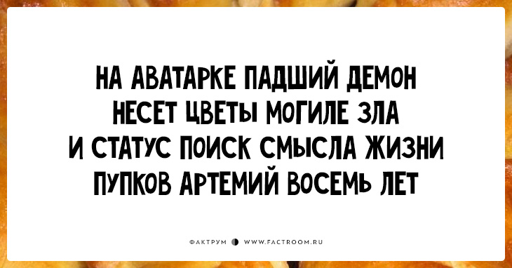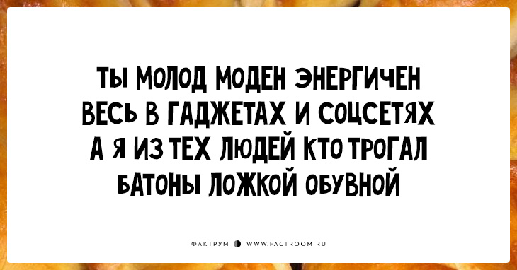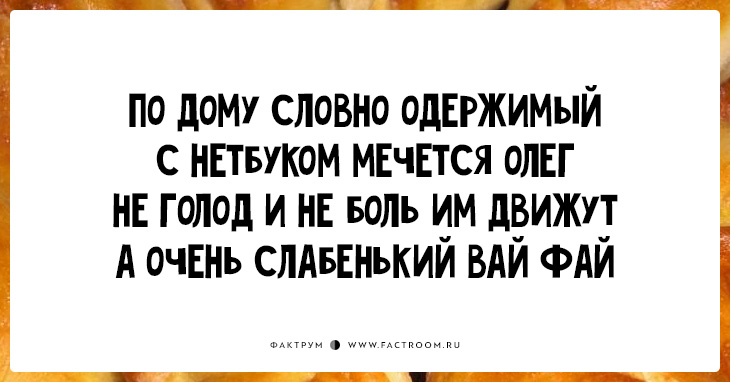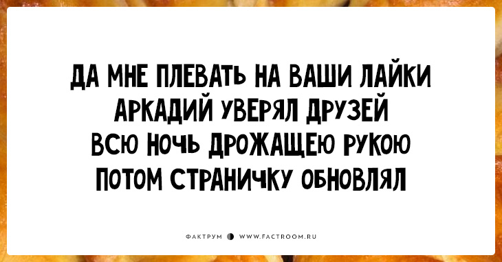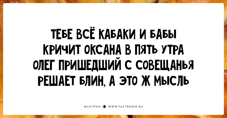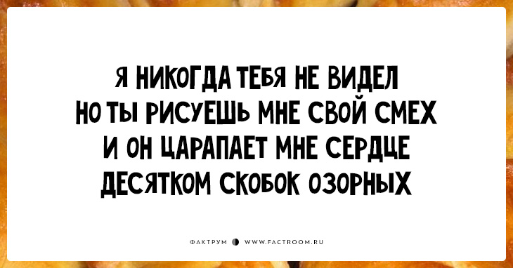 «Пирожки» (они же «перашки») — остроумное четверостишие без знаков препинания и заглавных букв. В каждом ровно по 34 слога, бездна юмора и философский намёк. Ничего не отвлекает от сути!
