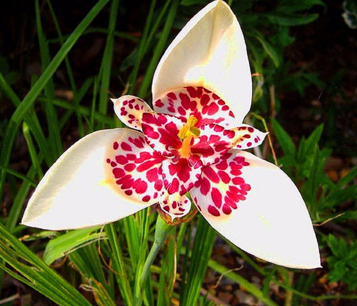 Несмотря на свою изысканную красоту, тигридия знакома далеко не многим. Эта нежная красавица родом из Центральной и Южной Америки очень теплолюбива и требует к себе бережного отношения. Свое экстравагантное название цветок получил из-за сердцевины характерного тигрового окраса.