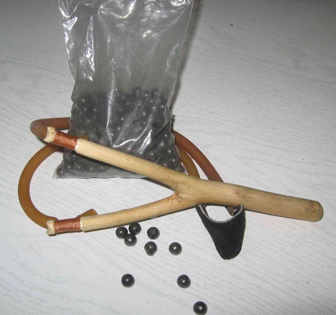 У меня простецкая рогатка из первого попавшегося рогачика. Да, я знаю что рахитная. Да, как-нибудь сделаю лучше :) Тяжи из катетера Пельтцера, номер 25 (по случаю купил несколько штук нестерильных по дешевке). Даже не представляю для чего они используются врачами и знать не хочу. Но стреляют они отменно! Хотя, знающие люди говорят что плоские тяжи быстрее круглых. Так что задумаете вооружаться, ищите латексную ленту для пилатеса. Стрелять в маятник буду свинцовой картечиной диаметром 8 мм и весом 3,3 гр.