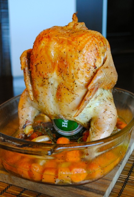 Готовится это блюдо чрезвычайно просто: курица натирается солью и специями, устанавливается на открытую банку с пивом и запекается на гриле или в духовке. Вот и все!
