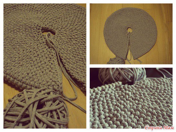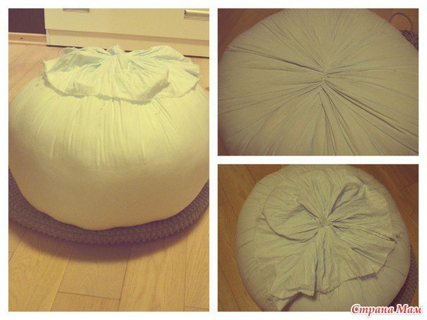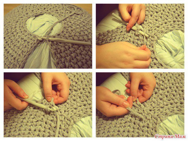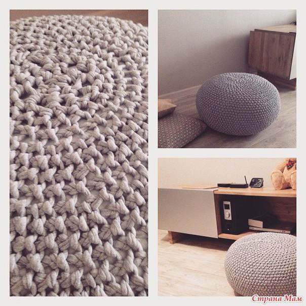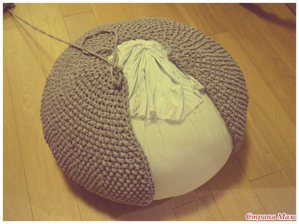 Пуфик спицами укороченными рядами из ленточной пряжи