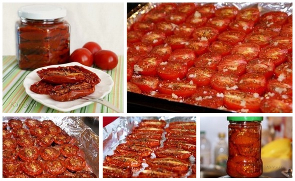 Запекать при 150°C примерно 3-3.5 часа. Когда помидоры будут готовы, горячими плотно уложить в банку. Из заявленого количества ингредиентов получается одна поллитровая банка. Оставшееся на противне масло влить в банку, закрутить герметично крышкой и поставить в горячую духовку на 30 мин. Под банку подложить силиконовый коврик или сложенную тряпочку.