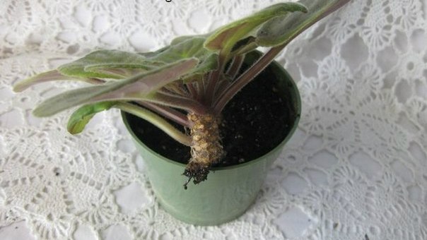 Цветение старой сенполии с оголённым стеблем ослабевает, у розетки мельчают листья и изменяется их форма. Такое оголённое растение нуждается в омоложении.