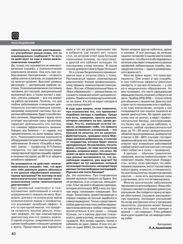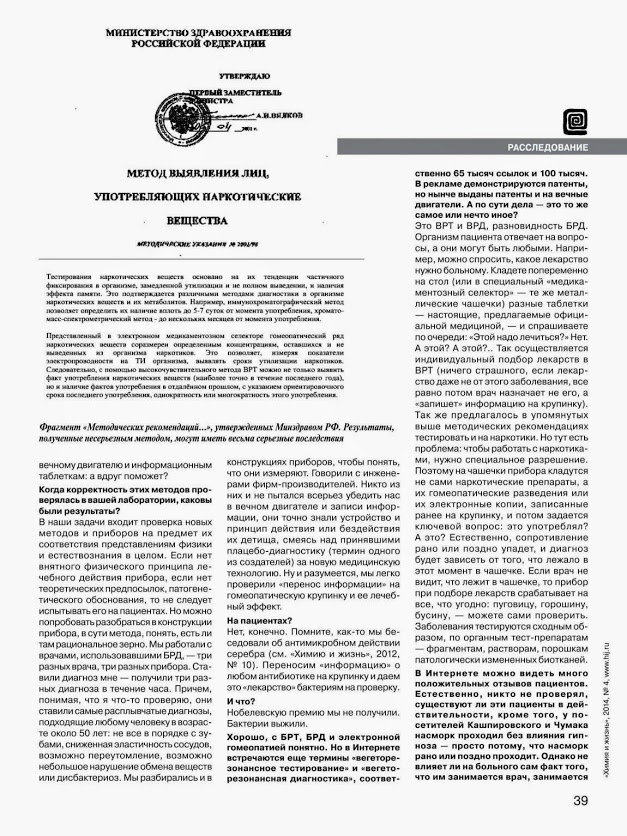 статья журнала "Химия и жизнь" о биорезонансе.