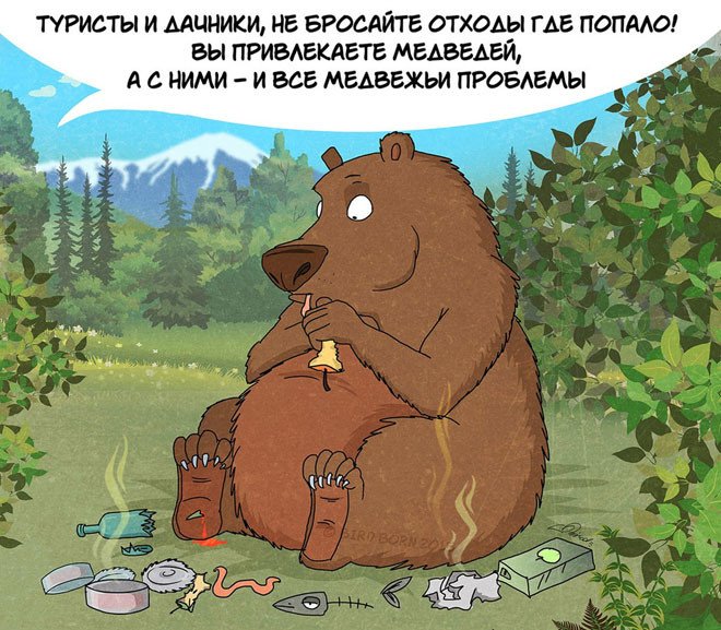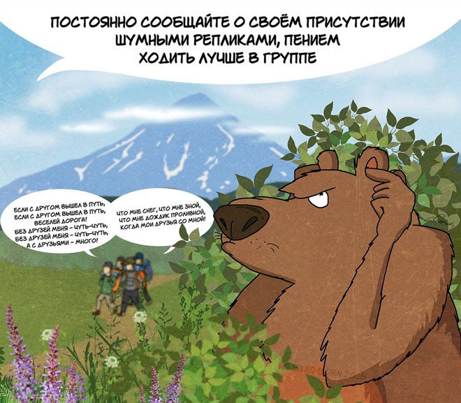 Правила поведения на медвежьей территории, изложенные в виде красочных комиксов, подготовлены Кроноцким государственным природным биосферным заповедником (Камчатка).