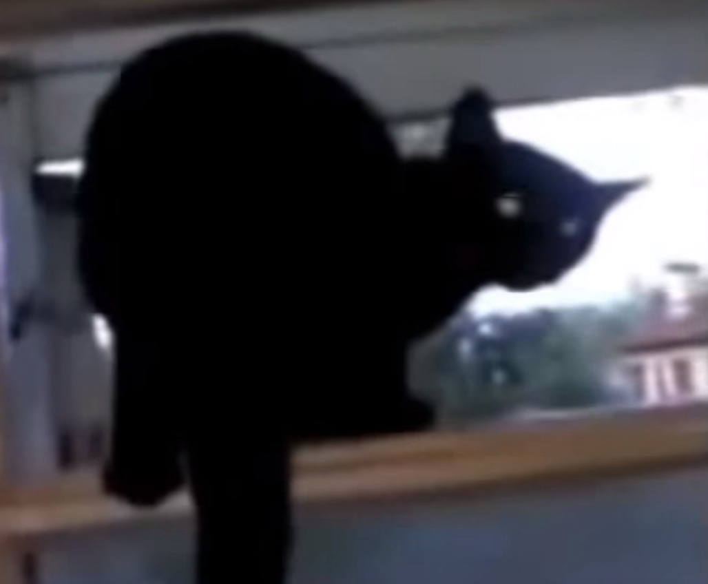 Кот высунулся в окно и гавкал, как настоящая собака. Я даже сначала подумала, что это собаки за окном. Но потом он обернулся и, увидев хозяина, начал мяукать.