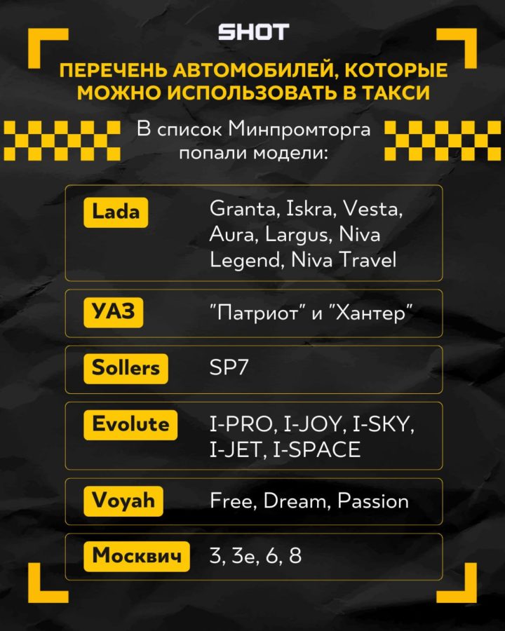 УАЗы, «Нивы» и «Москвичи» будут ездить в такси. Минпромторг представил список машин, которые можно использовать для работы в такси.