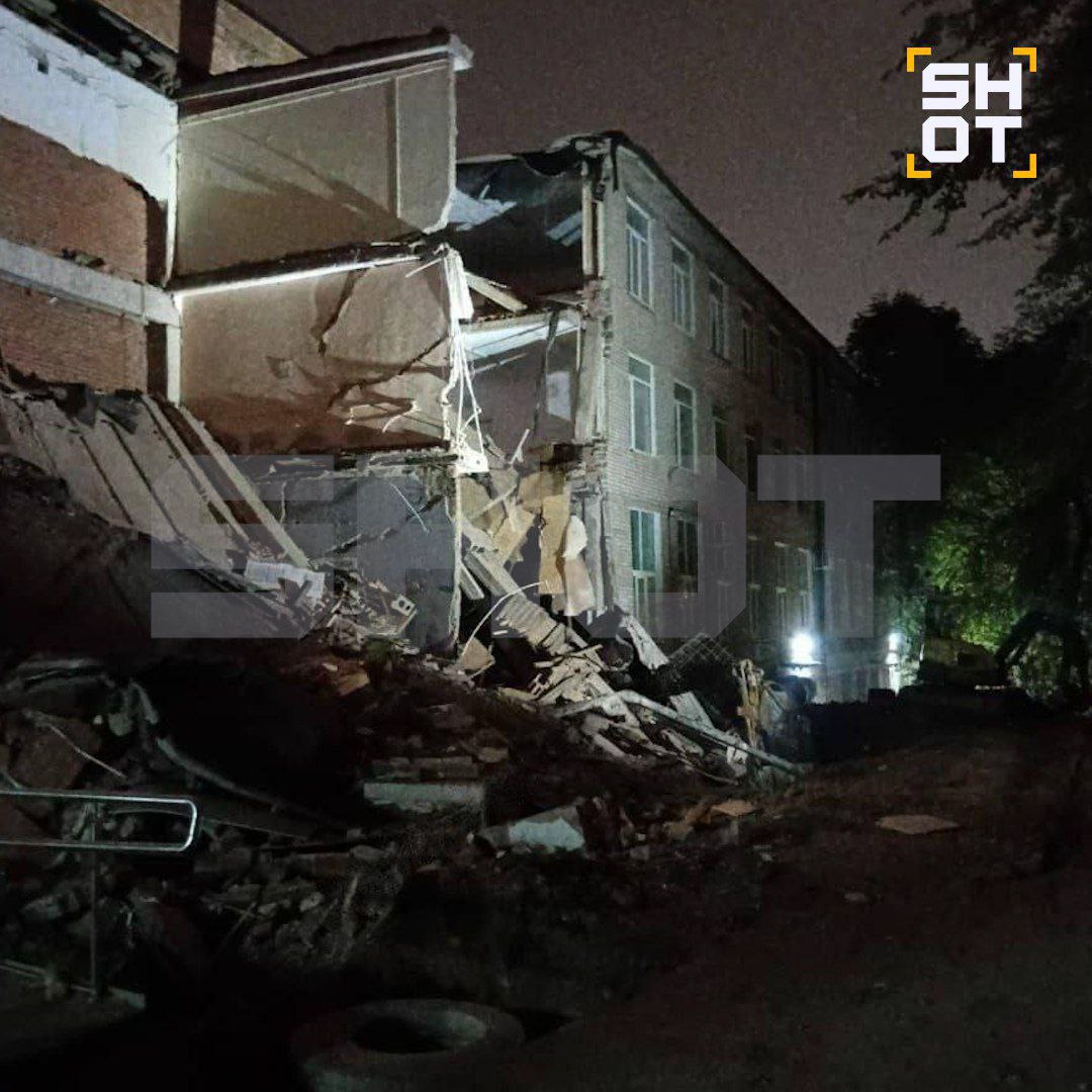 Как SHOT, разрушились все три этажа учебного корпуса. На опубликованных кадрах видна груда обломков на месте, где еще недавно стояло здание. Сейчас на месте работают оперативные службы, оценивая масштабы происшествия.