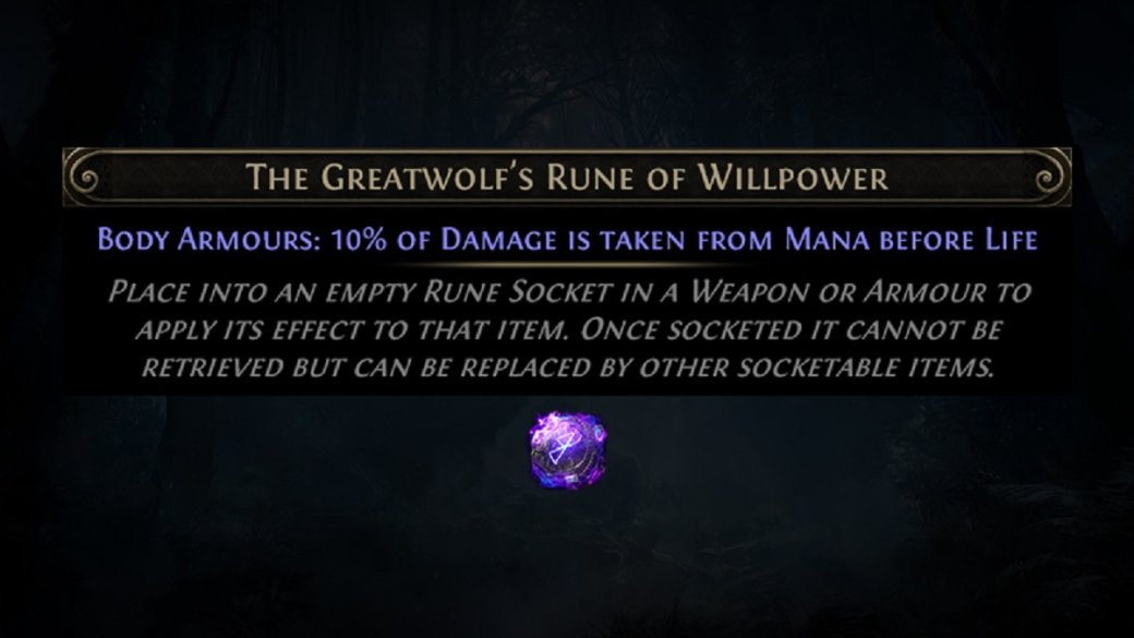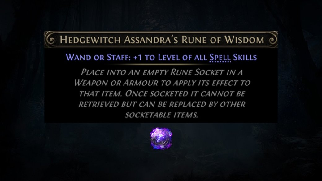 - Hedgewitch Assandraʼs Rune of Wisdom — посох или жезл, +1 к уровню всех навыков заклинаний; Farrulʼs Rune of the Chase — обувь, скорость передвижения увеличивается на 5%; The Greatwolfʼs Rune of Willpower — доспехи, 10% урона приходится на ману вместо здоровья.