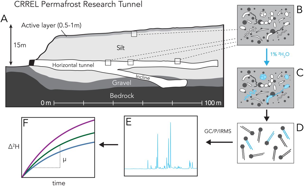 Чтобы понять, насколько деятельны микробы, простого наблюдения будет мало. Нужно было измерить скорость их роста. Ученые из Университета Колорадо в Боулдере и Инженерного корпуса армии США применили для этого метод изотопного зондирования липидов.
