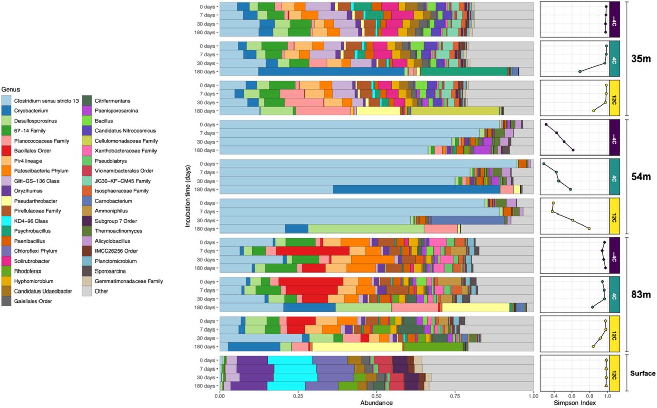 Микробные сообщества в оттаявших образцах полностью меняют свой состав. Виды, которых раньше было очень мало, вдруг начинают преобладать. Например, главными становятся хорошо приспособленные к холоду бактерии рода Cryobacterium и спорообразующие Clostridium.